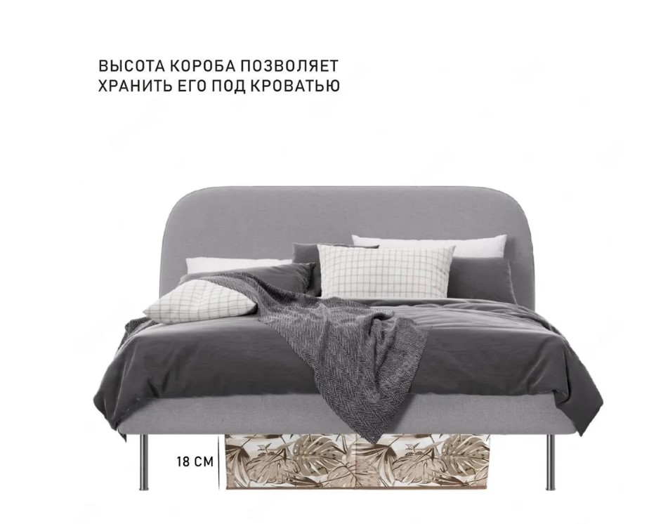 Органайзер для хранения идеально подойдет для популярных стеллажей и шкафов (Леруа, Икеа/Ikea, HOFF), органично впишется в пространство полки или верхнюю часть шкафа, а также под кровать в спальне, детской. Кофр с крышкой можно хранить под кроватью и на антресолях.