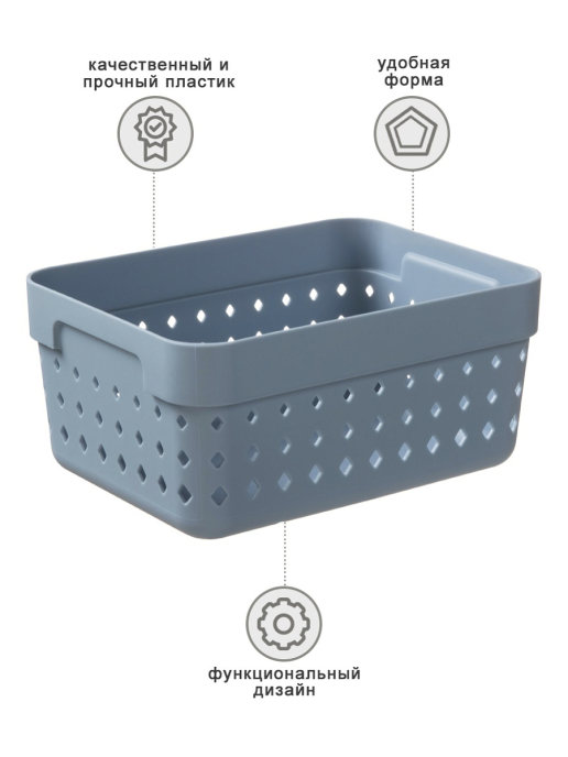 Идеально подойдет для организации пространства для любой комнаты в доме, на кухне или в офисе. Габариты корзины разработаны с учетом самых ходовых размеров полок и стеллажей. Отличается минималистическим, рациональным и прагматичным стилем.