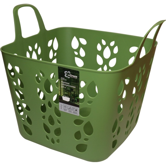 Широкая вместительная форма корзины, позволяет помещать любые хозяйственно-бытовые предметы и пищевые продукты.