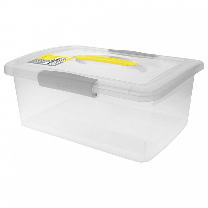 Компактный и немного вытянутый ящик с защелками и ручкой - отличное решение для умного хранения домашних вещей