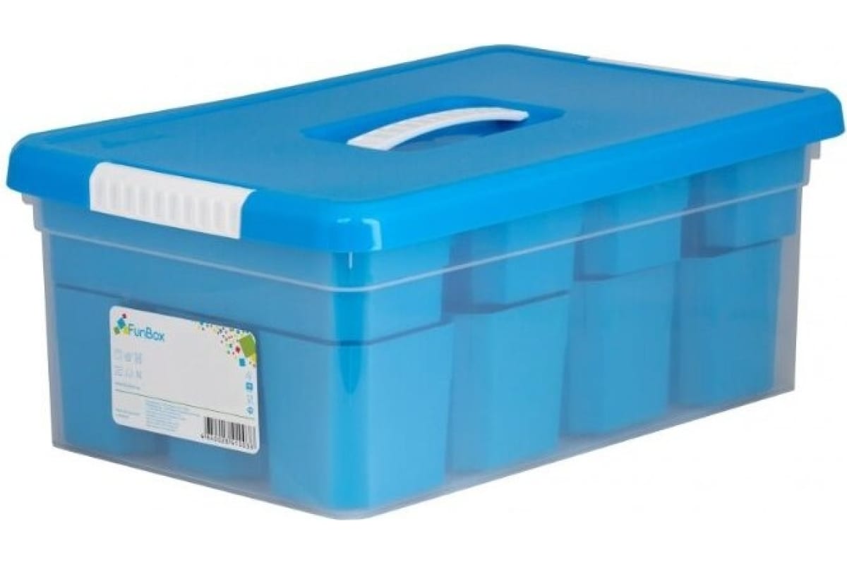 Ящик-органайзер FunBox Standart 10 л с ручкой 12 вставок S + 2 лотока S 00000047016 предназначен для хранения различных мелочей.