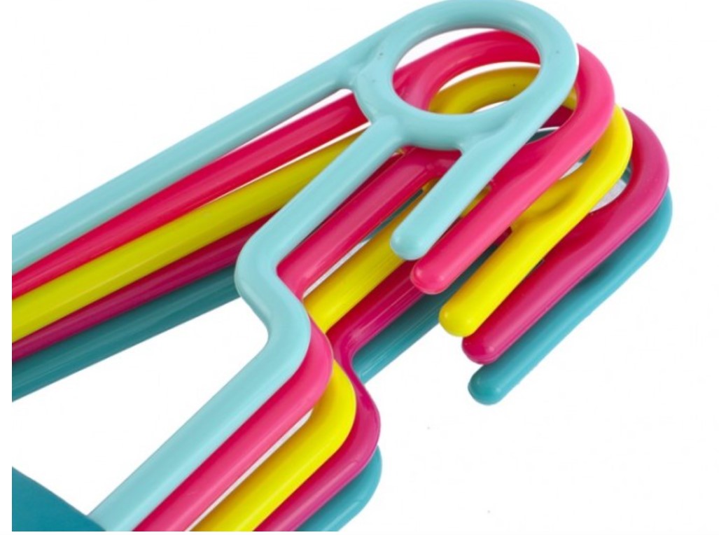 Комплект цветных пластиковых вешалок 38 см Elfe 92930, 5 шт., предназначен для хранения легкой одежды в шкафу или гардеробе. С его помощью можно поддерживать вещи в идеальном состоянии без необходимости отглаживания. Поверхность вешалок предотвращает повреждение одежды из шелка и других деликатных тканей. Преимущества Вешалки оборудованы специальными крючками для подвешивания юбок и платьев за петельки и бретельки, что предотвращает соскальзывание одежды. По бокам вешалок имеются кольца для хранения аксессуаров: ремней, галстуков, шарфов и платков. Перекладины позволяют размещать на вешалках легкие брюки. Вешалки изготовлены из высококачественного полипропилена, устойчивого к деформации. 5 вешалок в наборе хватит на несколько комплектов одежды.