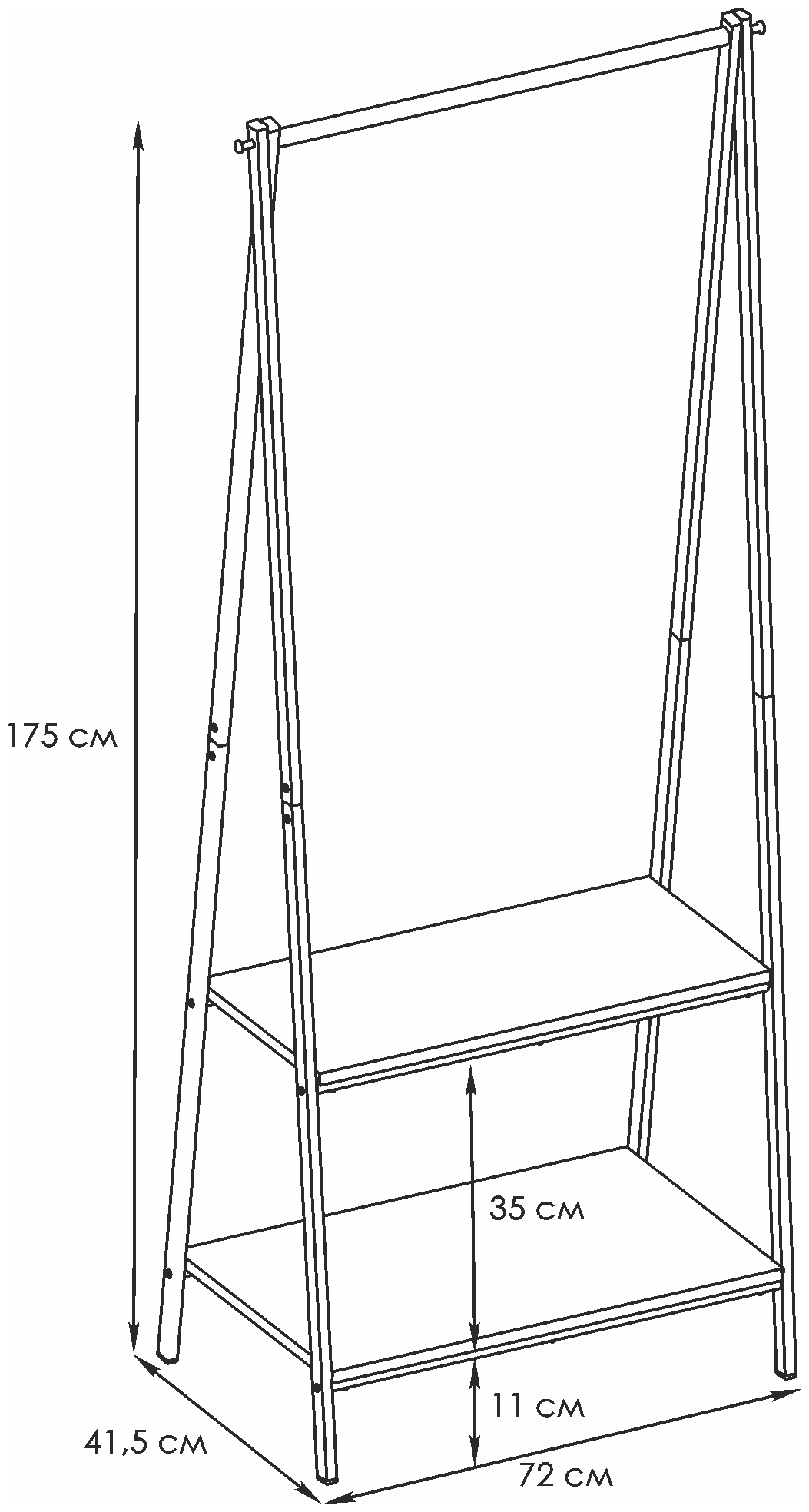 Штанга-рейл выдерживает нагрузку до 20 кг, а полка из высококачественного ЛДСП-до 10 кг.