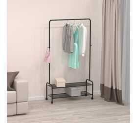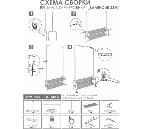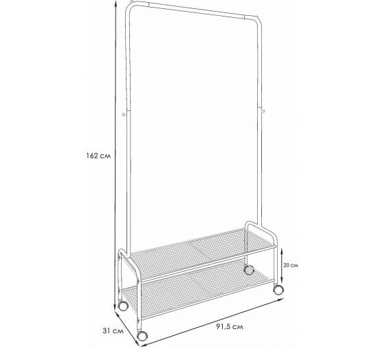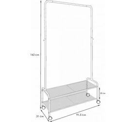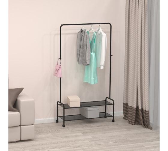Гардеробная вешалка ЗМИ Валенсия 32М с двумя полками на колёсах цвет черный ВГВ32МЧ предназначена для размещения одежды.