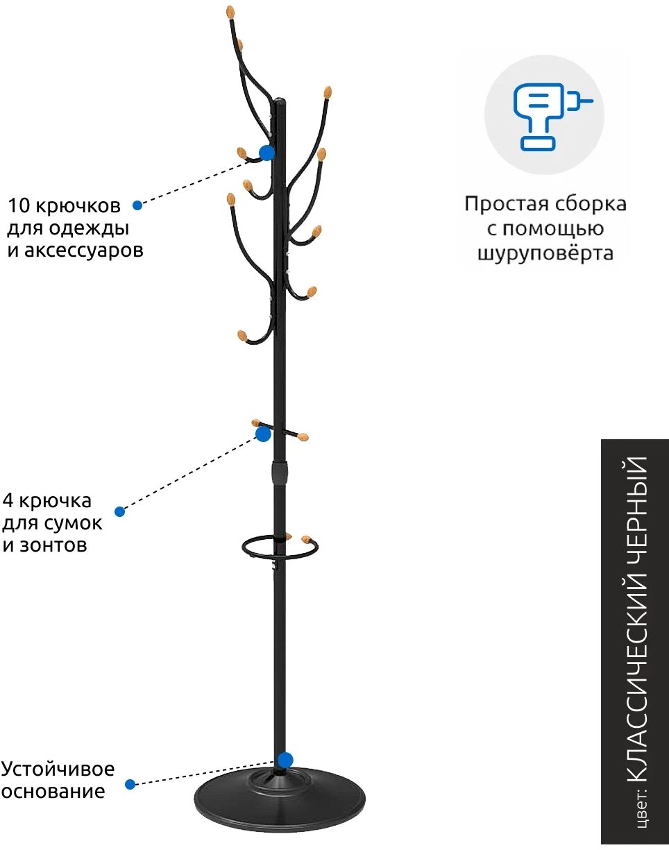 - в нижней части вешалки предусмотрены крючки для сумок и зонтов