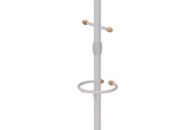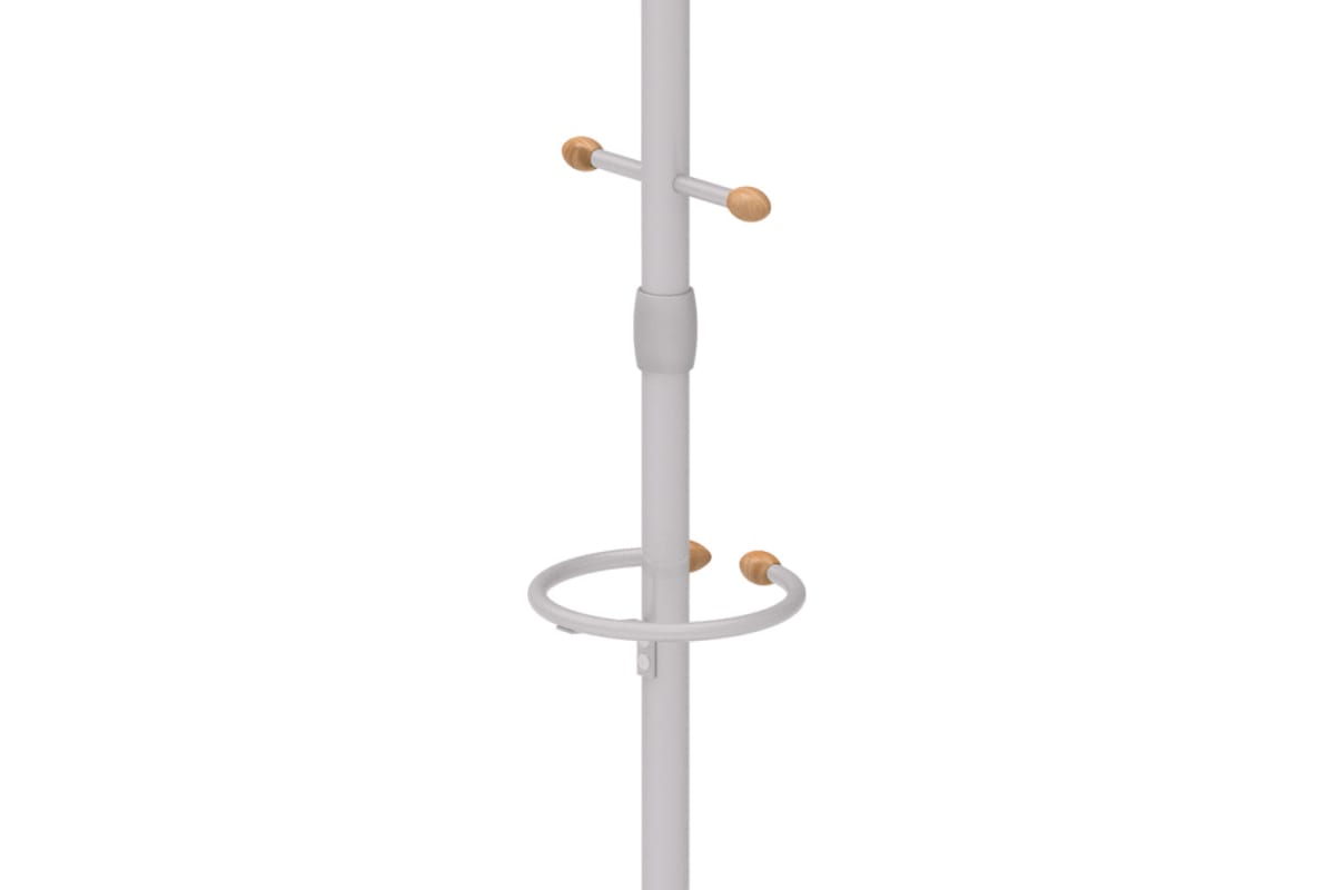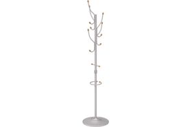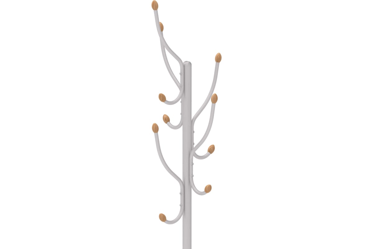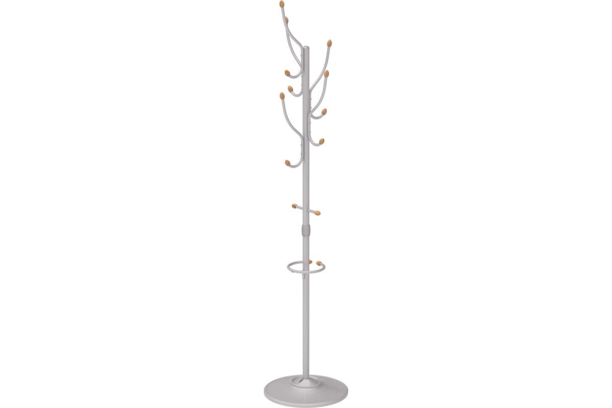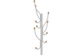 Напольная вешалка обладает оригинальной формой с декором из дерева. Круглое основание обеспечивает дополнительную устойчивость изделия. Для комфортного использования предусмотрен дополнительный кронштейн для сумок и зонтов.