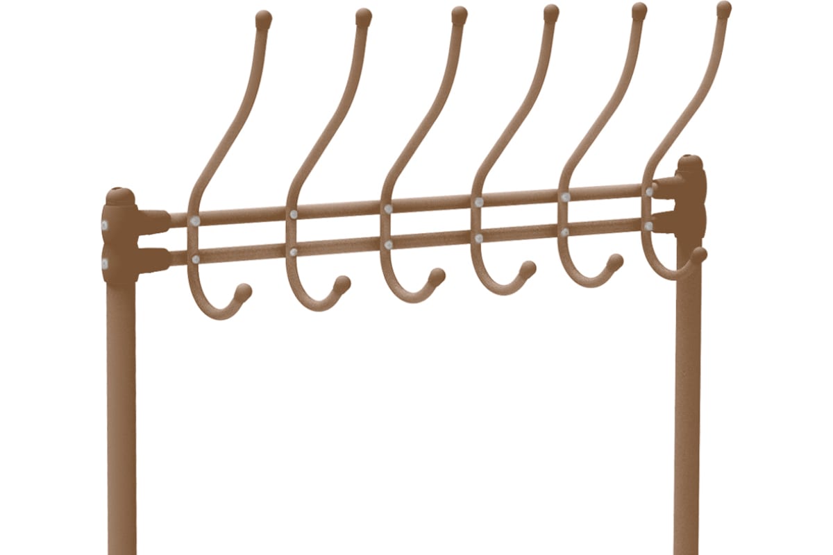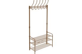 Напольная вешалка - функциональная мебель для прихожей с вместительными полками для обуви и крючками для размещения одежды. Надежная металлическая конструкция выдерживает нагрузку: на вешалку - 40 кг, на крючок - 10 кг, на полку -10 кг.