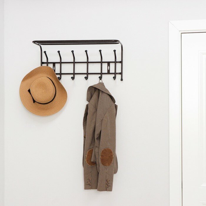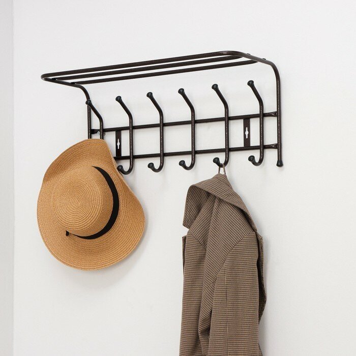 Настенная вешалка с полкой Nika 6 крючков, медный антик ВП6 используется для верхней одежды.