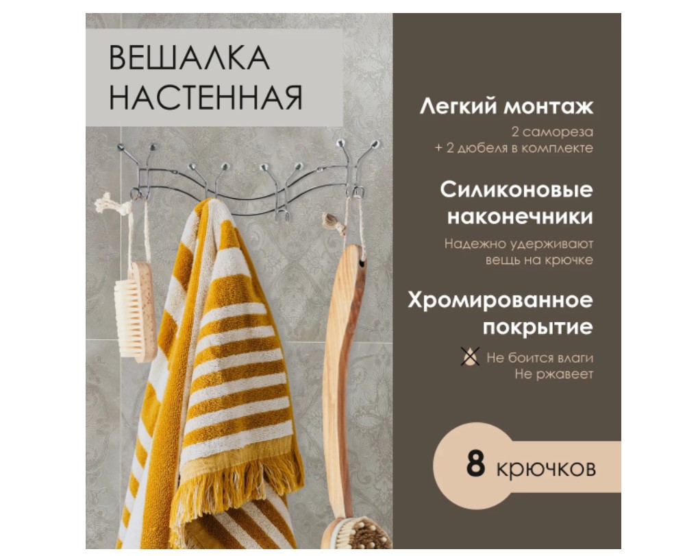 Вешалка настенная ROSENBERG R-360009, 8 крючков