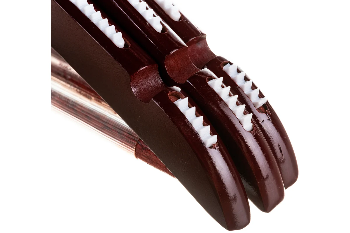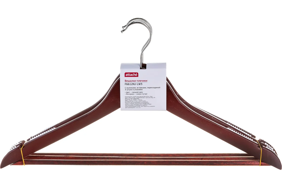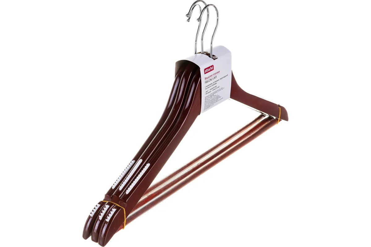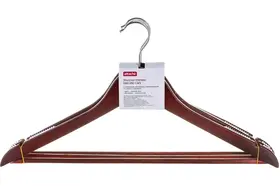 Деревянная вешалка-плечики с выемками и перекладиной Attache размер 48-50, орех, 3 шт 280410 предназначена для хранения вещей в гардеробе и шкафу.