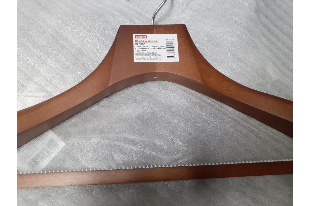 Технические характеристики вешалки-плечиков Attache 285359 Размер 52-54 Длина 480 мм Количество 1 шт Цвет коричневый Материал дерево Вес нетто 0.399 кг Клипсы нет