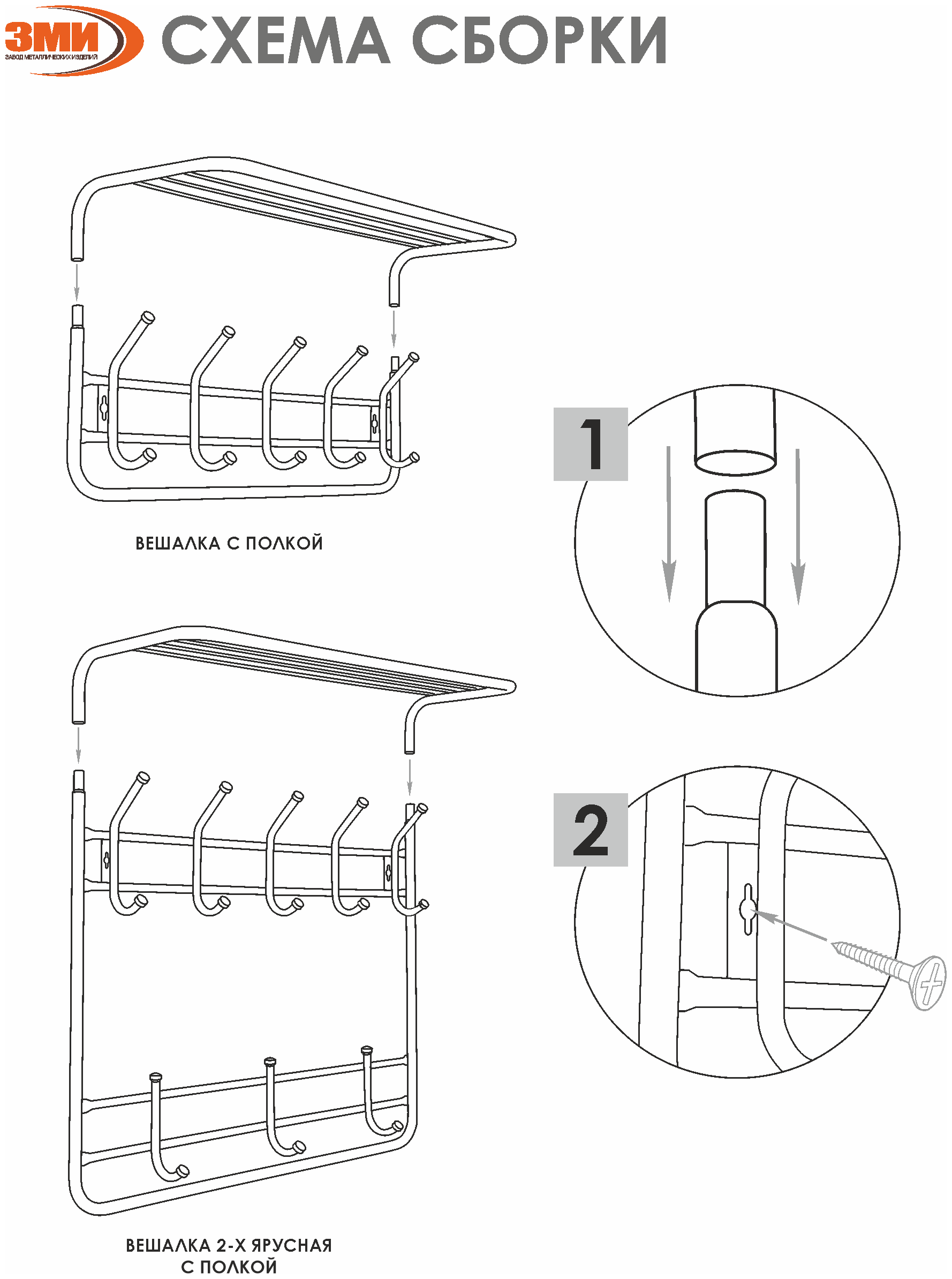 Настенная двухуровневая вешалка с полкой от российского производителя "ЗМИ" создана для хранения одежды в доме, на даче, в офисе и выполнена в классическом стиле. Она долго прослужит владельцу, благодаря материалу, из которого изготовлена - сталь и полимерно-порошковое покрытие. Вешалка имеет 8 металлических крючков - каждый из них может выдерживать до 5 кг постоянной нагрузки. Металлические колпачки будут держаться на крючках весь срок службы вешалки, благодаря особой технологии запрессовывания. На полке можно разместить головные уборы. В комплекте идет пластиковый крючок для различных мелочей. Вешалка продается в разобранном виде в коробке с ручкой, что позволяет с удобством донести ее до дома с пункта выдачи. Сборка осуществляется без инструмента.