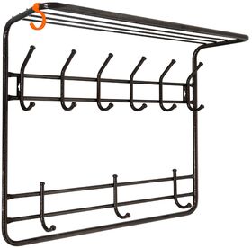 Настенная двухуровневая вешалка с полкой от российского производителя "ЗМИ" создана для хранения одежды в доме, на даче, в офисе и выполнена в классическом стиле. Она долго прослужит владельцу, благодаря материалу, из которого изготовлена - сталь и полимерно-порошковое покрытие. Вешалка имеет 9 металлических крючков - каждый из них может выдерживать до 5 кг постоянной нагрузки. Металлические колпачки будут держаться на крючках весь срок службы вешалки, благодаря особой технологии запрессовывания. На полке можно разместить головные уборы. В комплекте идет пластиковый крючок для различных мелочей. Вешалка продается в разобранном виде в коробке с ручкой, что позволяет с удобством донести ее до дома с пункта выдачи. Сборка осуществляется без инструмента. Продаётся напрямую от производителя, что гарантирует качество и выгодную цену