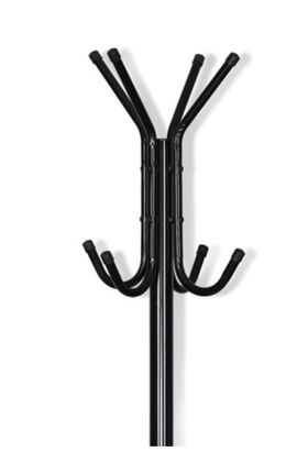 Вешалка выполнена из металлической трубы и 4-х надежных металлических крючков. Максимальная статическая нагрузка на каждый крючок 2 кг.