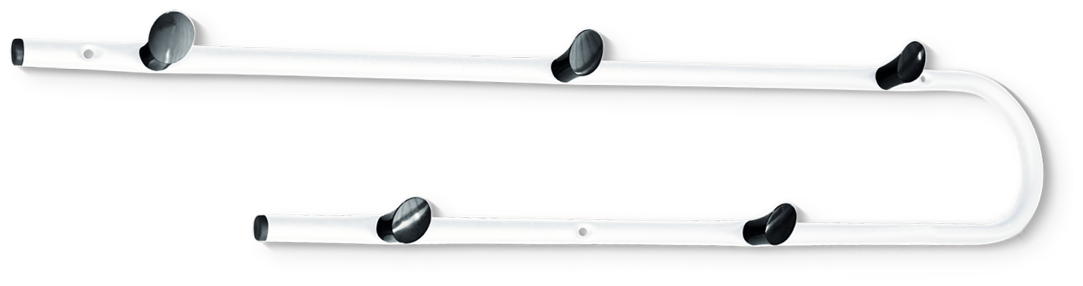 Вешалка выполнена из металлической трубы (диаметр 12мм) и 5-х надежных пластиковых крючков. Металлические детали окрашены порошковой краской, устойчивой к механическому воздействию. Максимальная статическая нагрузка на крючок 5 кг.