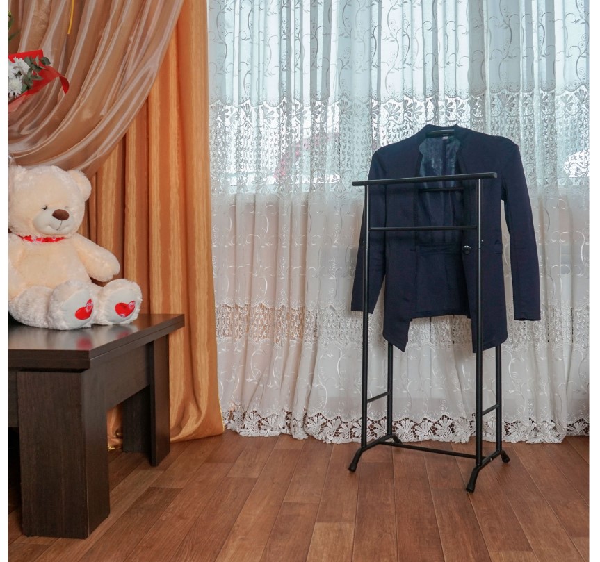 - надежная сварная конструкция- вместительная модель, на которую с легкостью можно уместить полный комплект костюма – пиджак, рубашку, брюки и галстук