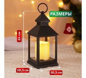 Декоративный фонарь со свечкой — оригинальное интерьерное украшение, которое принесет уют и тепло в ваш дом. Изделие предназначено для использования в интерьере. Декоративный элемент подсвечивается одним диодом, имитирующим теплое пламя свечи. Корпус черного цвета имеет высоту 24 см. Для размещения в подвешенном виде предусмотрено кольцо. Фонарь питается от 3 батареек типа ААА, специальный отсек закрывается при помощи крышки.