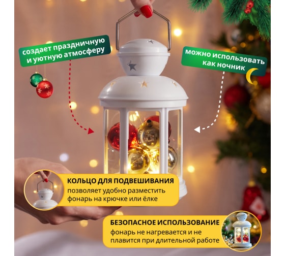 Декоративный фонарь с шариками NEON-NIGHT 12х12х20.6 см 513-062 поможет украсить домашний интерьер или оформить тематическую зону для фотосессии.