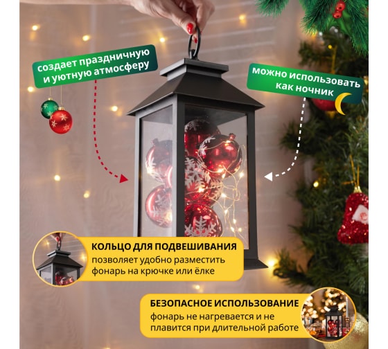 Декоративный фонарь с шариками Neon-Night 27 см, теплый белый 513-063 олицетворяет тепло и домашний уют в преддверии Нового года. Помогает сделать домашние вечера в кругу семьи комфортными и поднимает настроение окружающим.