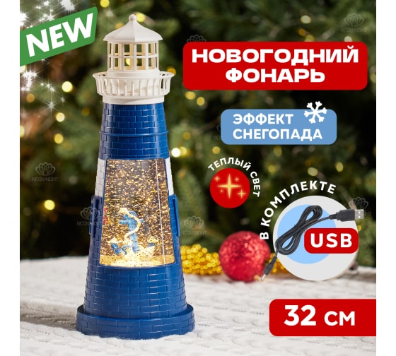 Декоративный светильник Neon-Night маяк, синий, с конфетти и подсветкой, usb 501-171 – прекрасное украшение гостиной, детской, фотозоны и отличный подарок к любому празднику. Общая высота изделия – 32 см.