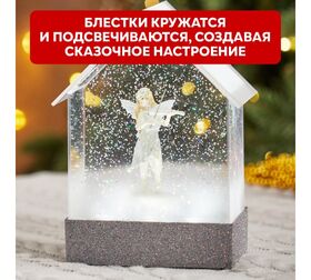 Фонарь наполнен специальной жидкостью и конфетти, которые при включении начинают циркулировать, создавая атмосферу праздника и уюта.