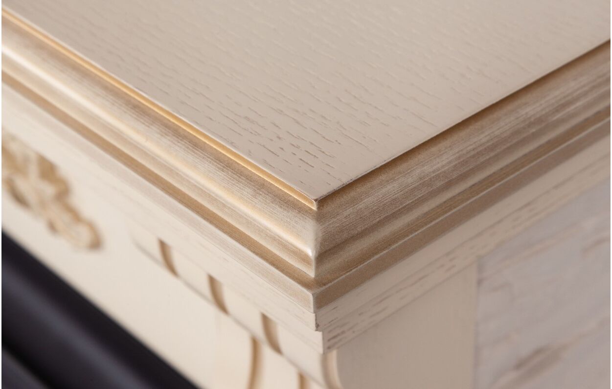 Утонченный мини-камин Lilian станет главным декоративным элементом любой комнаты. Уникальность портала заключается в рельефных вставках, украшенных цветочными узорами и легком оттенке перламутра на обрамлении. Стильный открытый очаг с массивной чугунной решеткой и реалистичным муляжом дров добавляют схожести с натуральным камином. Очаг может работать как в декоративном режиме, так и на обогрев.
