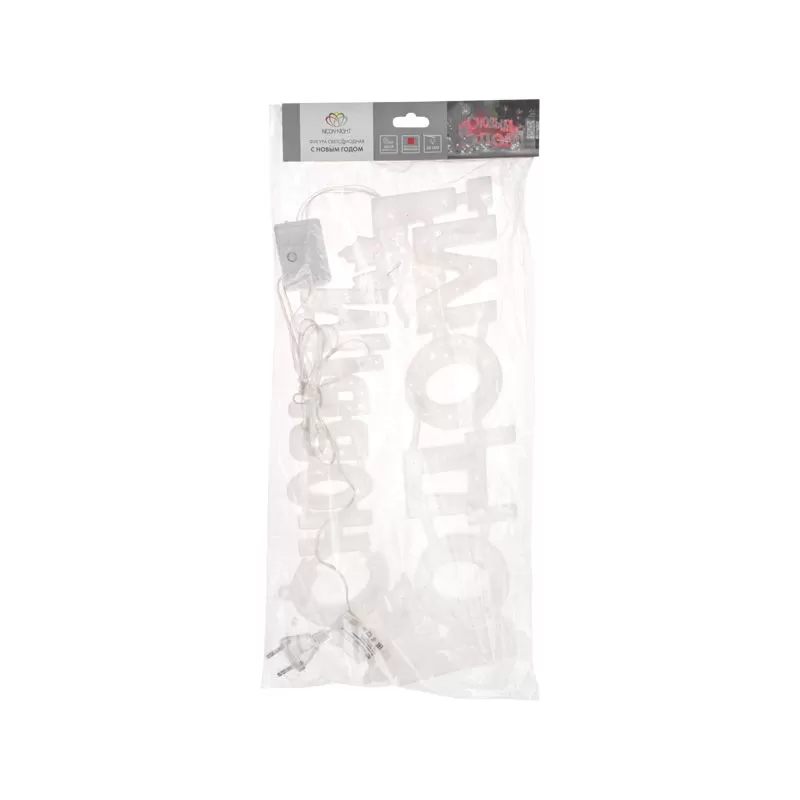 Светодиодная фигура «С Новым годом!» 42×19 см выполнена в виде объемной надписи, которая прекрасно подойдет для создания красивых праздничных композиций. Украшение с 35 красными светодиодами управляется контроллером. 8 режимов позволяют выбрать подходящий вариант для создания веселой атмосферы в доме. Декоративная фигура питается от стандартной электрической сети 230 Вольт. Защита IP20 предполагает размещение в комнатах со стандартными условиями.