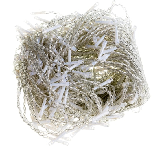 Количество светодиодов: 288. Размер гирлянды: 12 х 0,6 м.Количество нитей: 72. Цвет свечения: холодный. Режим свечения: постоянный.Цвет провода: прозрачный.