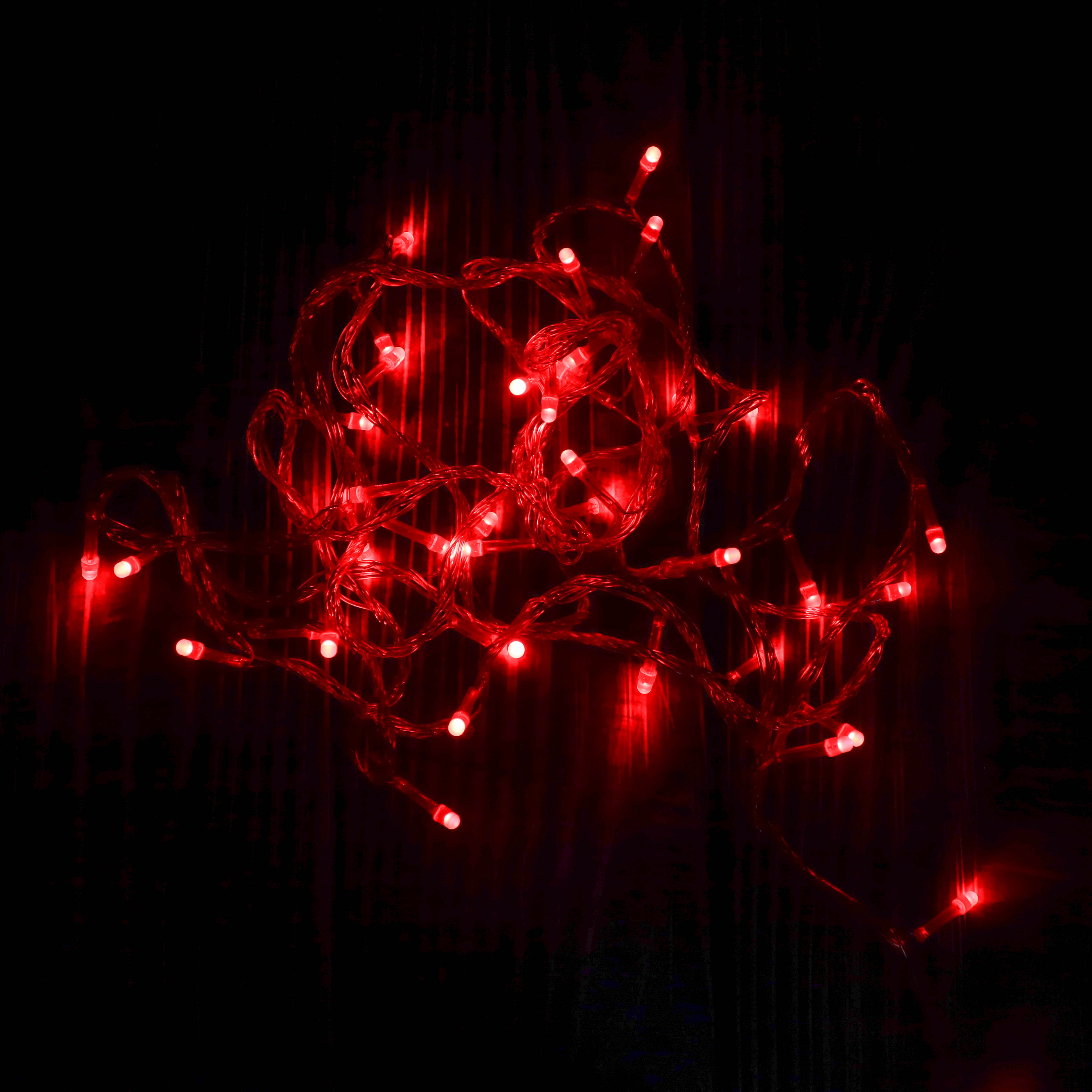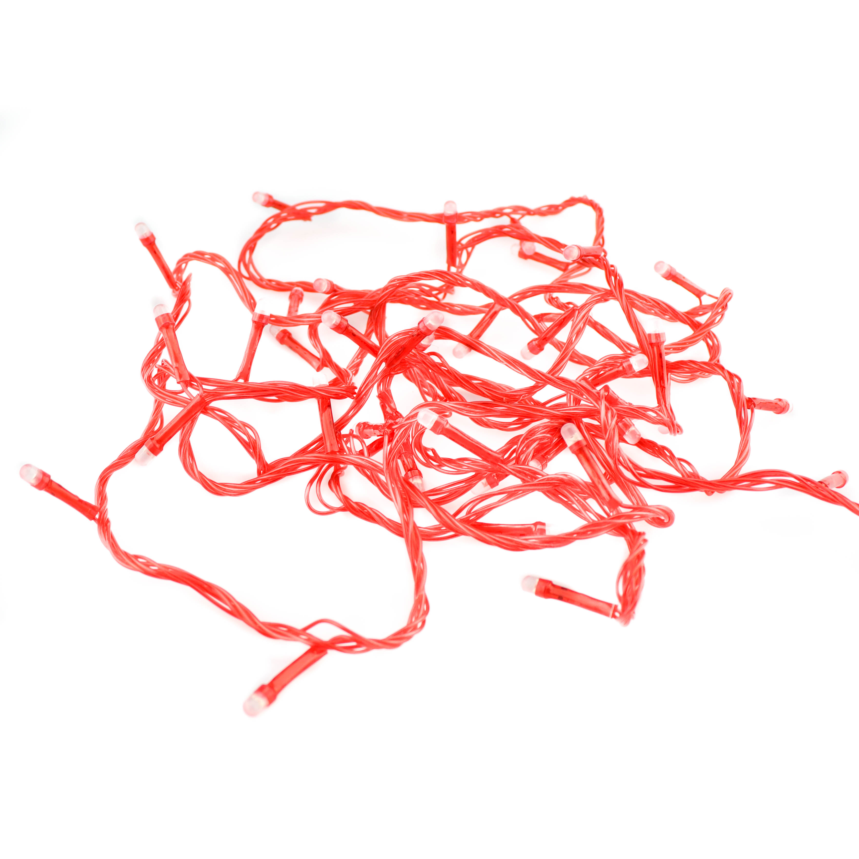 Гирлянда ёлочная LED, шнур красный, цвет красный