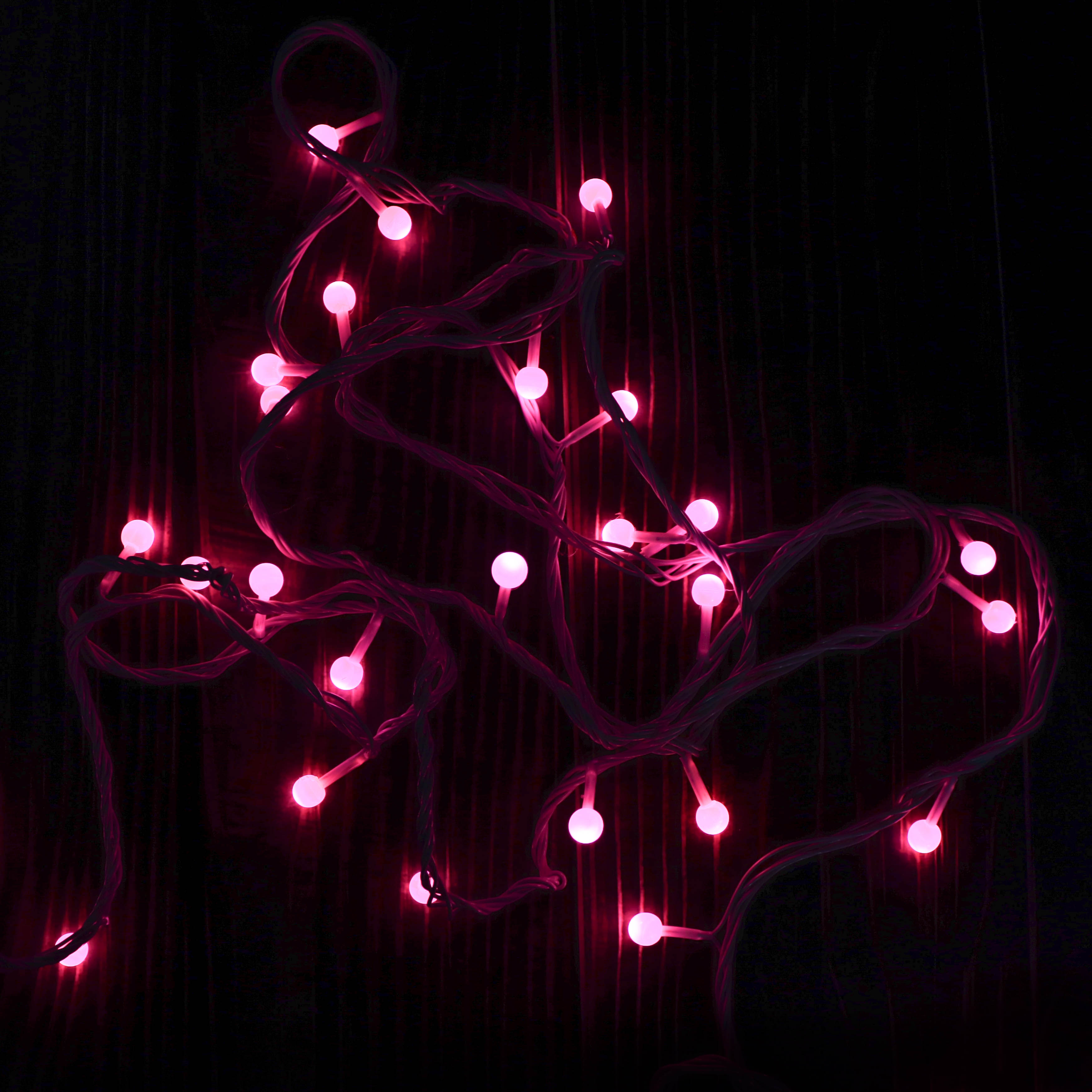 Гирлянда ёлочная, жемчуг, шнур белый, цвет розовый