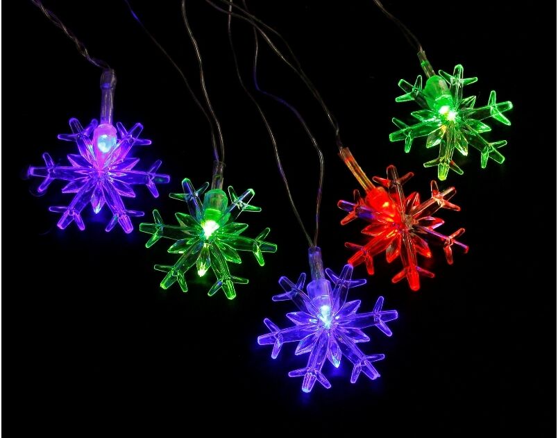 Гирлянда на батарейках, LED, снежинки цветной