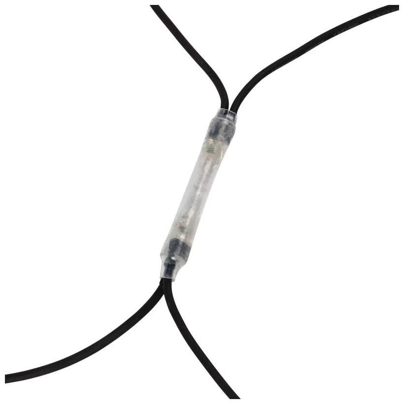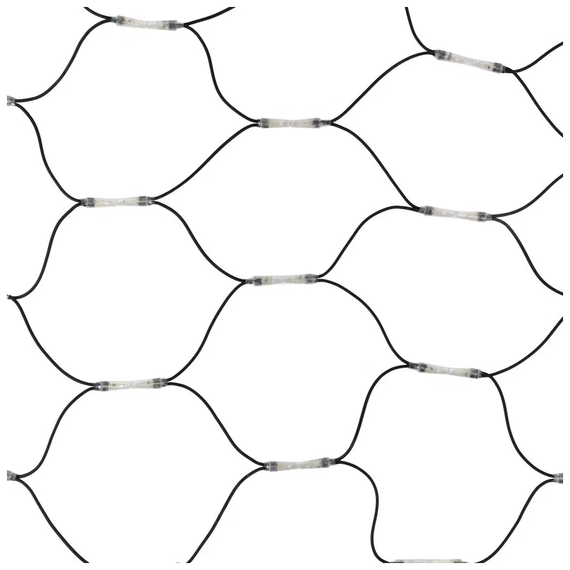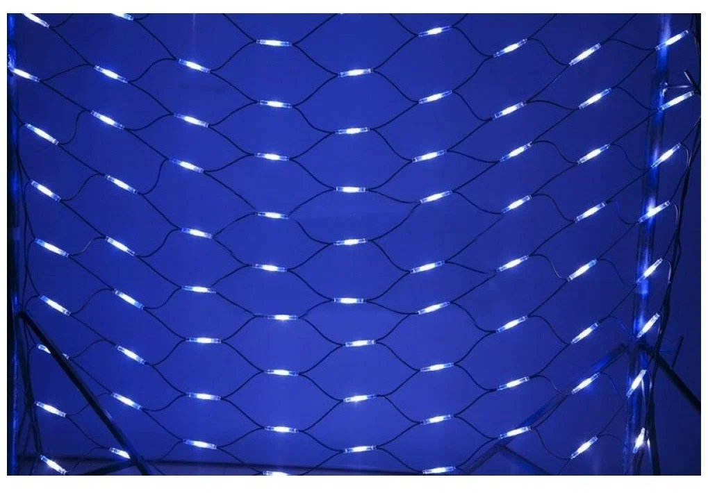 Гирлянда-сеть представляет из себя конструкцию в виде прямоугольника размером 2*3 метра, разбитого на равные ромбы, в углах которых находятся два диода белого и синего цвета, соединённых и расположенных по направлению друг к другу. Гирлянда имеет степень влагозащиты IP67 и каучуковый провод черного цвета, что позволит вам быстро и выгодно решить вопрос с декоративным украшением любых объектов как внутри помещения, так и снаружи. В комплект входит установочный набор для подключения гирлянды к сети. Особенностью этого типа гирлянд является то, что их можно соединять между собой и/или к ней можно также подключить контроллеры арт. 217-201 или 217-202 которые позволят гирлянде работать в динамике. Данная гирлянда используется для украшения фасадов и потолков зданий практически любой площади, отлично подходит для украшения небольших кустов, растяжки между направляющими в беседке или веранде, ей можно легко и быстро обмотать колонны или столбы, служит красивым декором окон зданий. Гирлянда-сеть имеет самое лучшее отношение цены к площади декорирования относительно других гирлянд, что делает ее уникальной в своем роде.