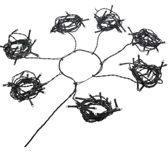 Елочная гирлянда с кольцом и 7 нитями по 1,5 м поможет в считаные минуты создать эффектный декор новогодней ели. Конструкция в виде кольца с длинными нитями, на которых расположены светодиоды, легко размещается на вершине елки. Для подключения к электросети предусмотрен трехметровый кабель — удлинитель не требуется. 105 диодов светятся разноцветными огнями, разбрасывая блики и заряжая окружающих веселым настроением. Контроллер с 8 режимами позволяет легко менять динамику свечения одним нажатием кнопки. Гирлянда с защитой IP20 станет прекрасным украшением квартиры, частного дома, офиса.