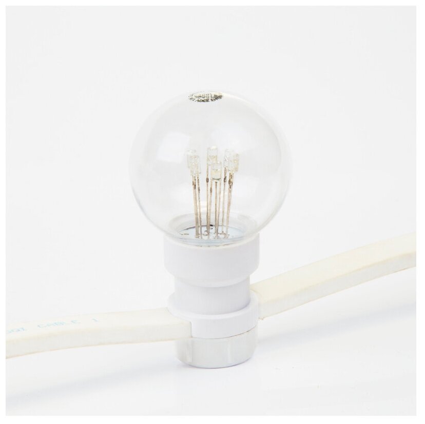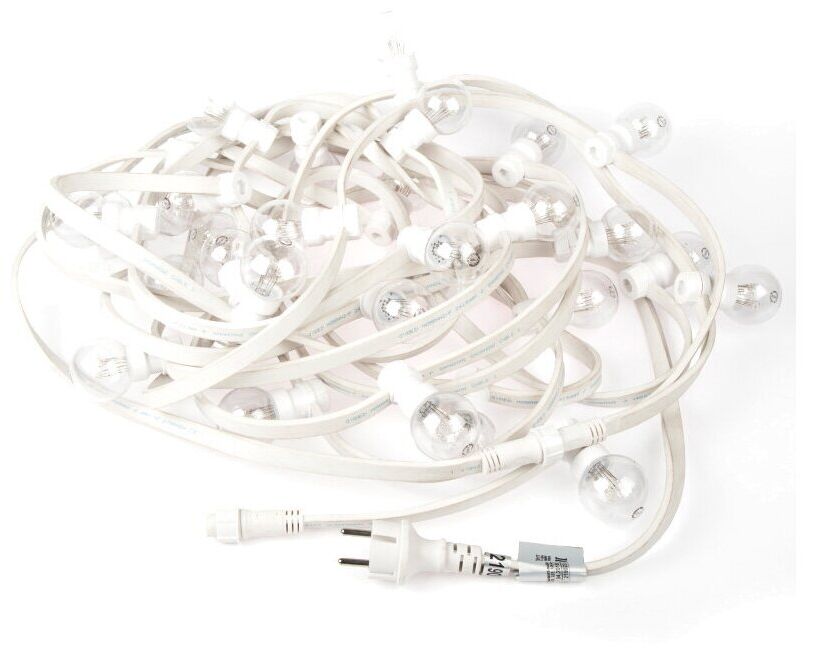 Дополнительная информация возможность соединения до 100 метров; лампочки диаметром 45 мм; мощность: 30 Вт для черного каучука и 25 Вт для белого.
