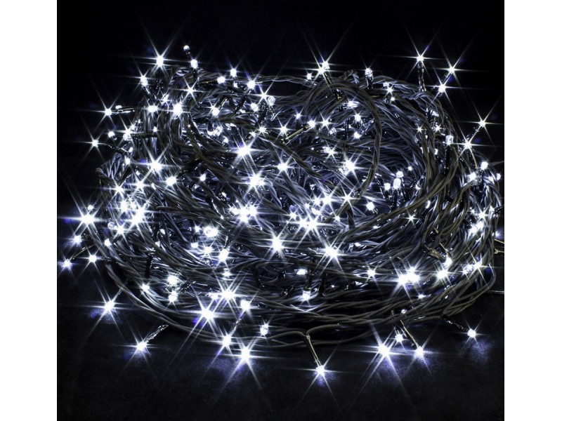 Гирлянда светодиодная 300 LED имеет черный провод, свечение белый свет, управление контроллер.