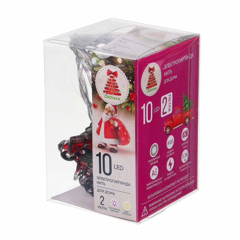СНОУ БУМ Гирлянда эл. насадка "Грузовичок Деда Мороза" 2м, 10LED*шампань, пост.свеч, ПВХ прозр, 2хАА