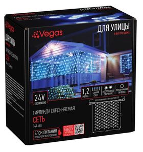 VEGAS 55032 Электрогирлянда Сеть 144 синих LED ламп 1,2*1,5м