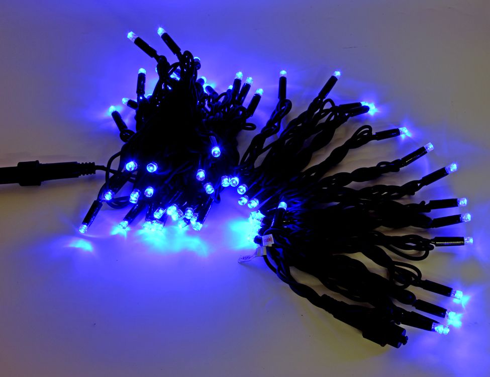 Уличная гирлянда, черный шнур, синяя, 10м