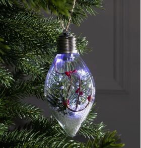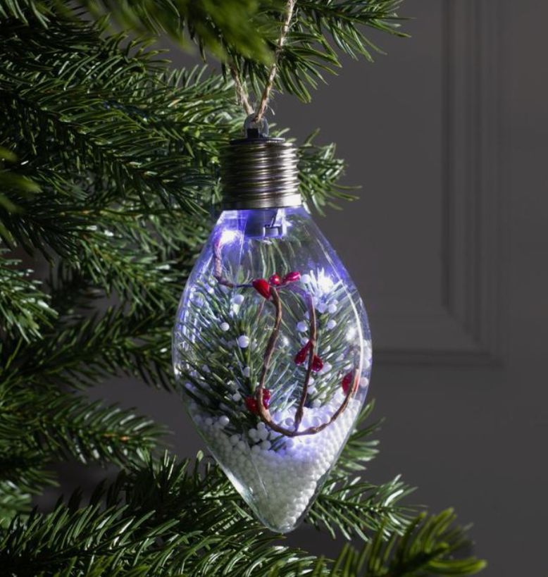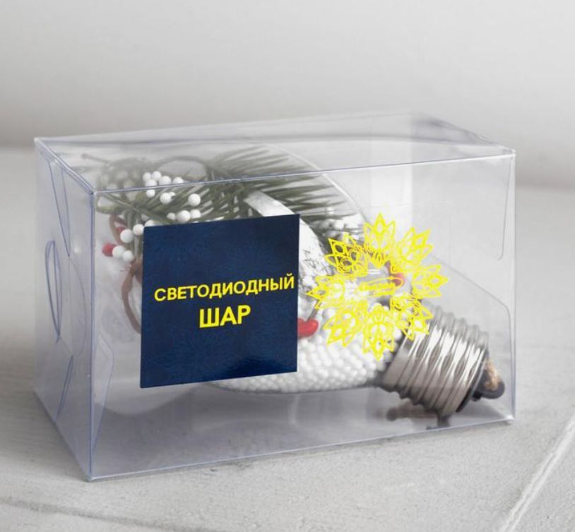 Елочный шар капля "Ветка елочки", 5 LED, от батареек, БЕЛЫЙ 4357258