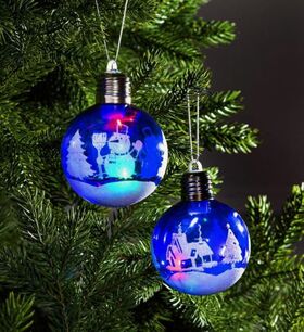 Набор елочных шаров "Зимний пейзаж", d=8 см, 1LED, 2 шт, от батареек, RGB 5864393