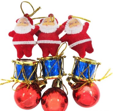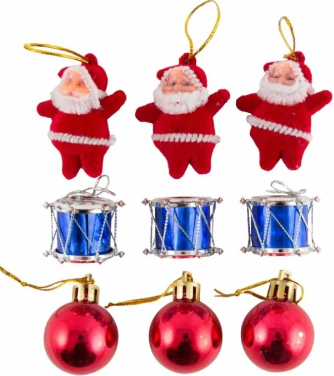 размер: санты 5 см (3шт), барабаны 2,5 см (3шт), шары красные 3 см (3шт) .