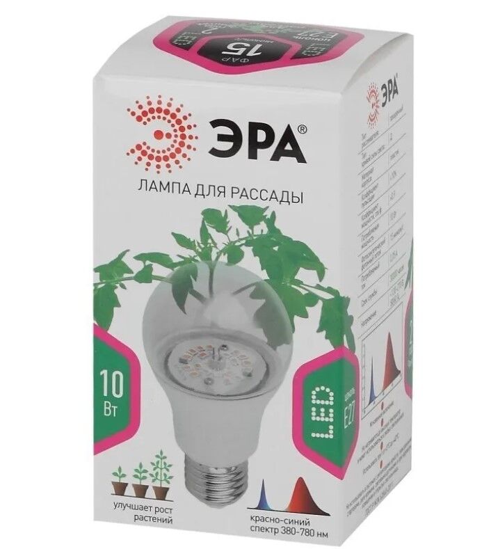 Маленький огород дома - это реально! Со светодиодной фитолампой для растений FITO-10W-RB-E27-K мощностью 10 Вт вы сможете выращивать не только рассаду, но и поддерживать взрослые растения на кухне, в комнате или балконе. Особенно светодиодная лампа FITO-10W-RB-E27-K мощностью 10 Вт поможет вырастить вам помидоры, перцы, баклажаны и зелень. Фитолампа имеет красно-синий спектр, что благоприятно влияет для получения всех необходимых веществ для поддержания здоровой корневой системы, а также ускорит их рост. Оптимальное расстояние фитолампы до листьев 10 см. Не рекомендуем располагать на высоте более 35 см, так как это не даст должного эффекта при данной мощности лампы. Лампа Эра имеет цоколь Е27 и подходит к любому светильнику с таким же цоколем. Радуйте себя богатым урожаем вместе с светодиодной фитолампой для растений FITO-10W-RB-E27-K!