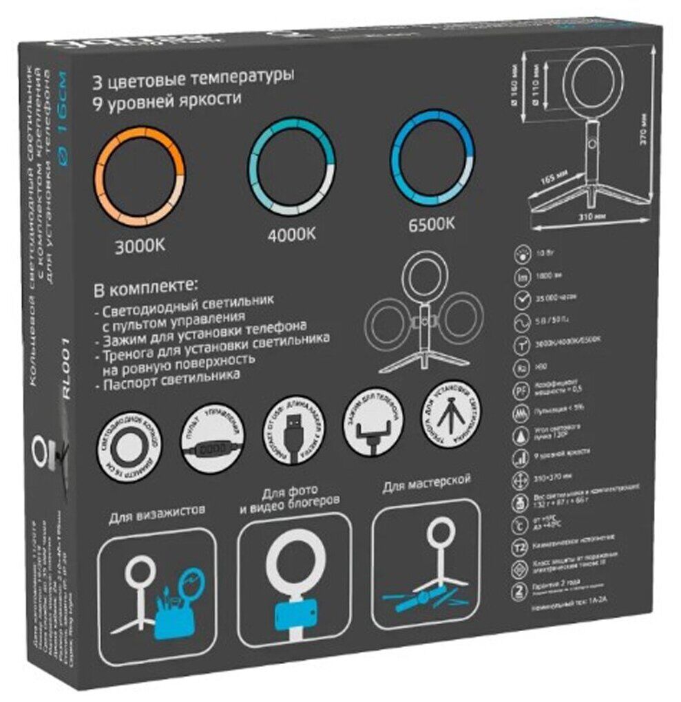 Светильник, зажим для смартфона, тренога, паспорт светильника
