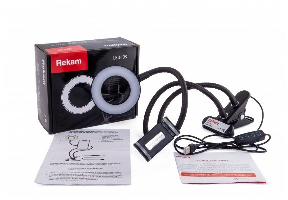 Лампа кольцевая светодиодная с держателем смартфона и креплением типа «прищепка». Инструкция. Гарантийный талон