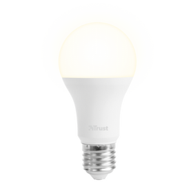 Светодиодная лампа с регулируемой яркостью, которой можно управлять дистанционно с помощью любого пульта или беспроводного переключателя TRUST SMART Home.