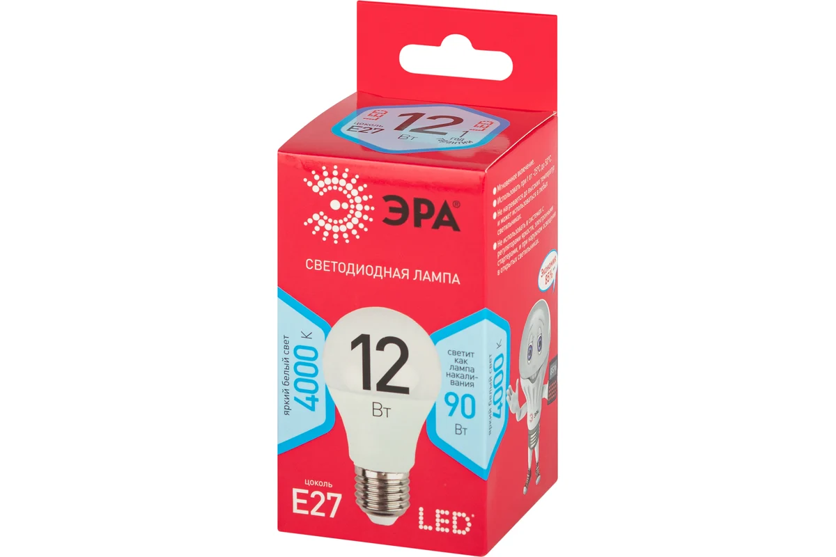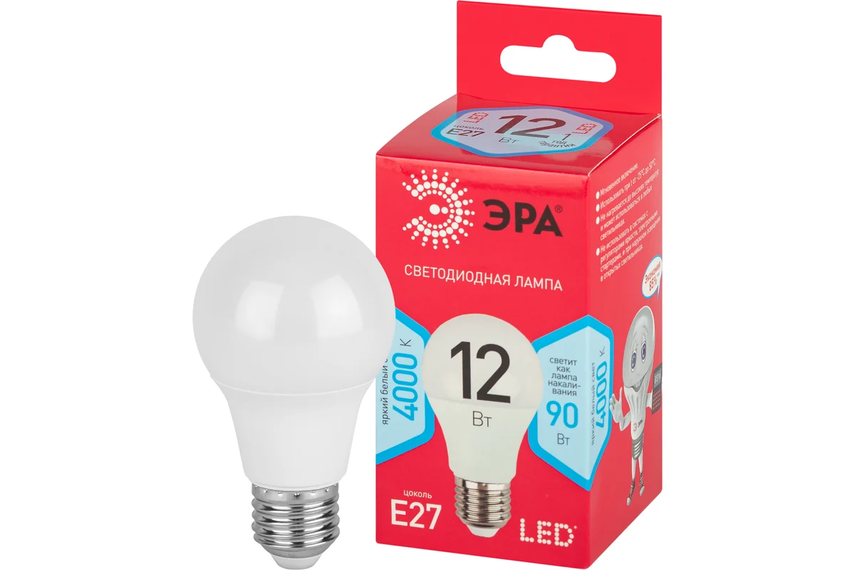 Технические характеристики ЭРА LED A60-12W-840-E27 R диод, груша, 12Вт, нейтральный свет, E27 Б0049636