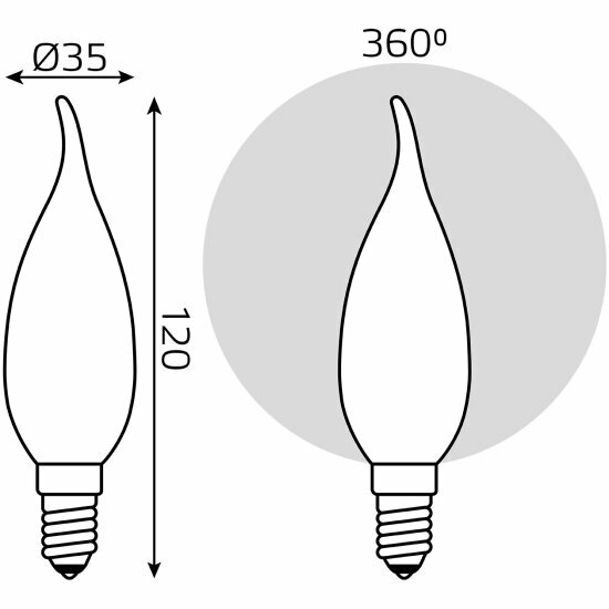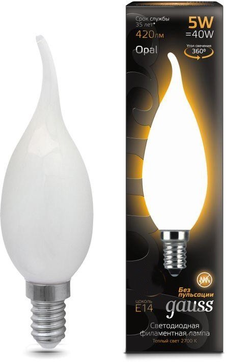 Технические характеристики Gauss LED Filament Свеча на ветру OPAL E14 5W 420lm 2700К 104201105