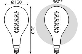 Технические характеристики Gauss Vintage Filament Flexible LED A160 8W E27 160х300mm Golden 620lm 2400K 150802008