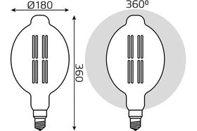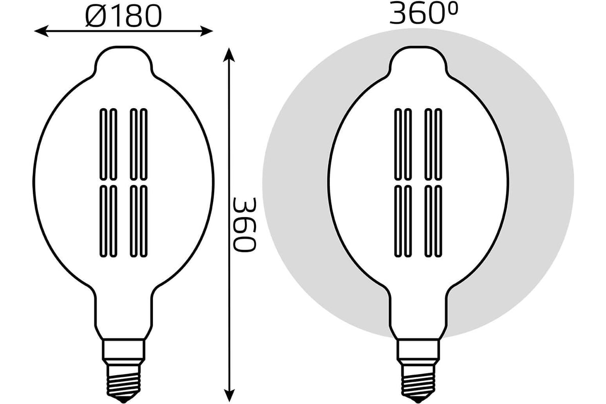 Технические характеристики Gauss Vintage Filament BT180 8W E27 180х360mm Golden 780lm 2400K 151802008