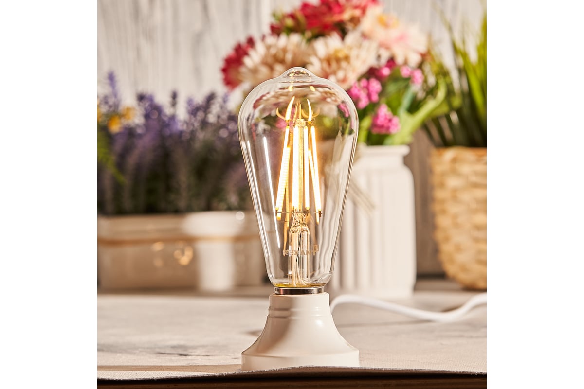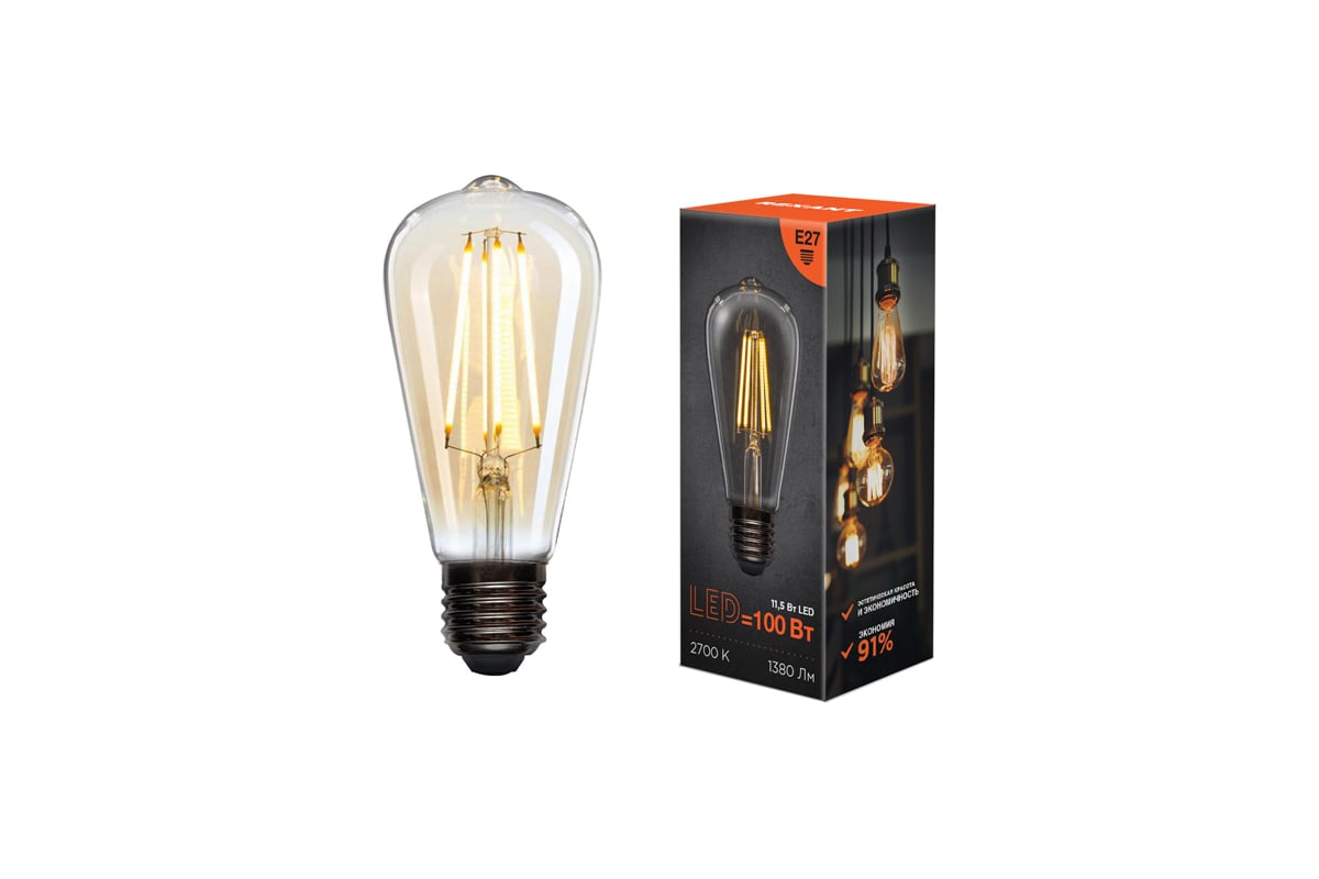 Филаментная лампа REXANT Груша ST64 11.5 Вт 2700K E27 604-139 излучает ровное свечение без бликов и мерцания.